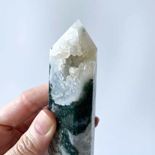 Moss Agate Sphere with Optical Calcite / 1.27kg