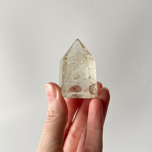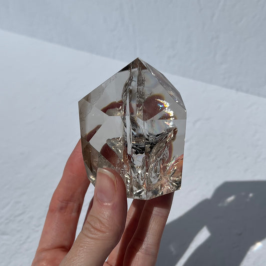 Clear Quartz Specimen Cluster with Pyrite Inclusions & Amethyst pockets / 776g