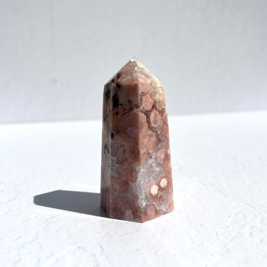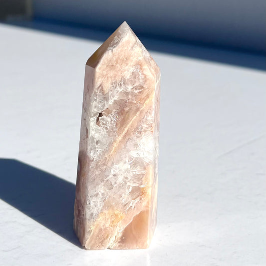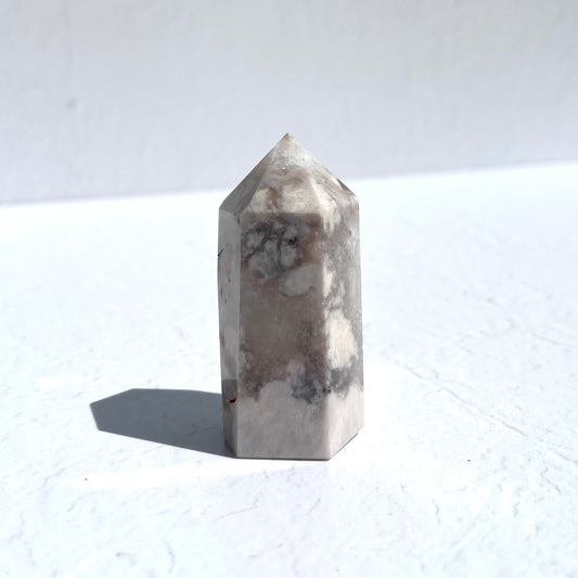 Pink (Sakura) Flower Agate Hexagon Point with Quartz / 139g