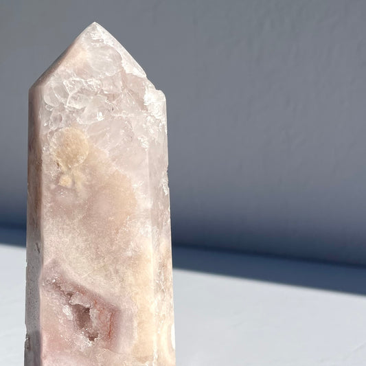 Pink (Sakura) Flower Agate Hexagon Point with Quartz / 591g