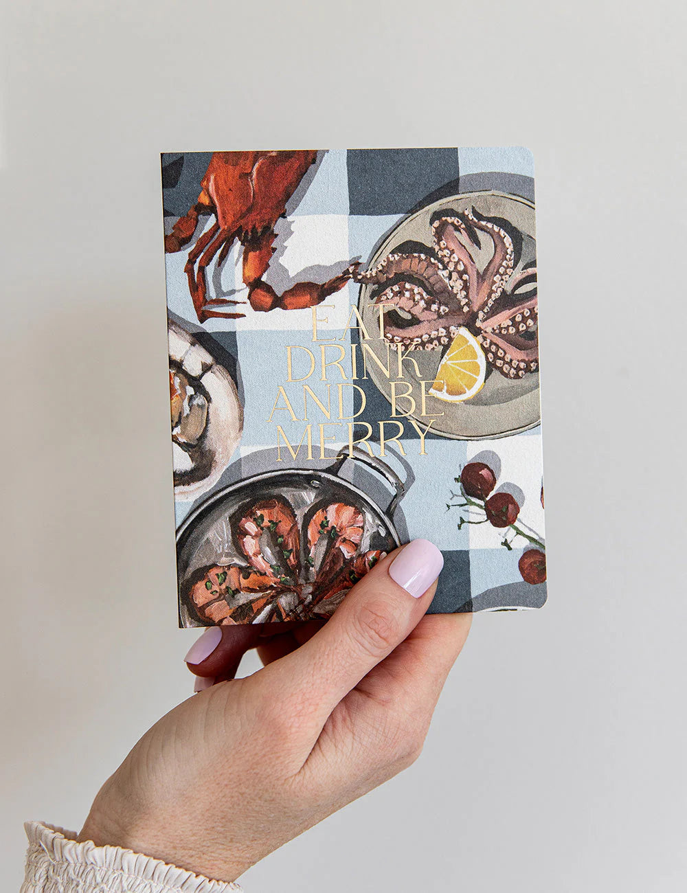 Hot foil printed Christmas greeting card "Eat, Drink and Be Merry".