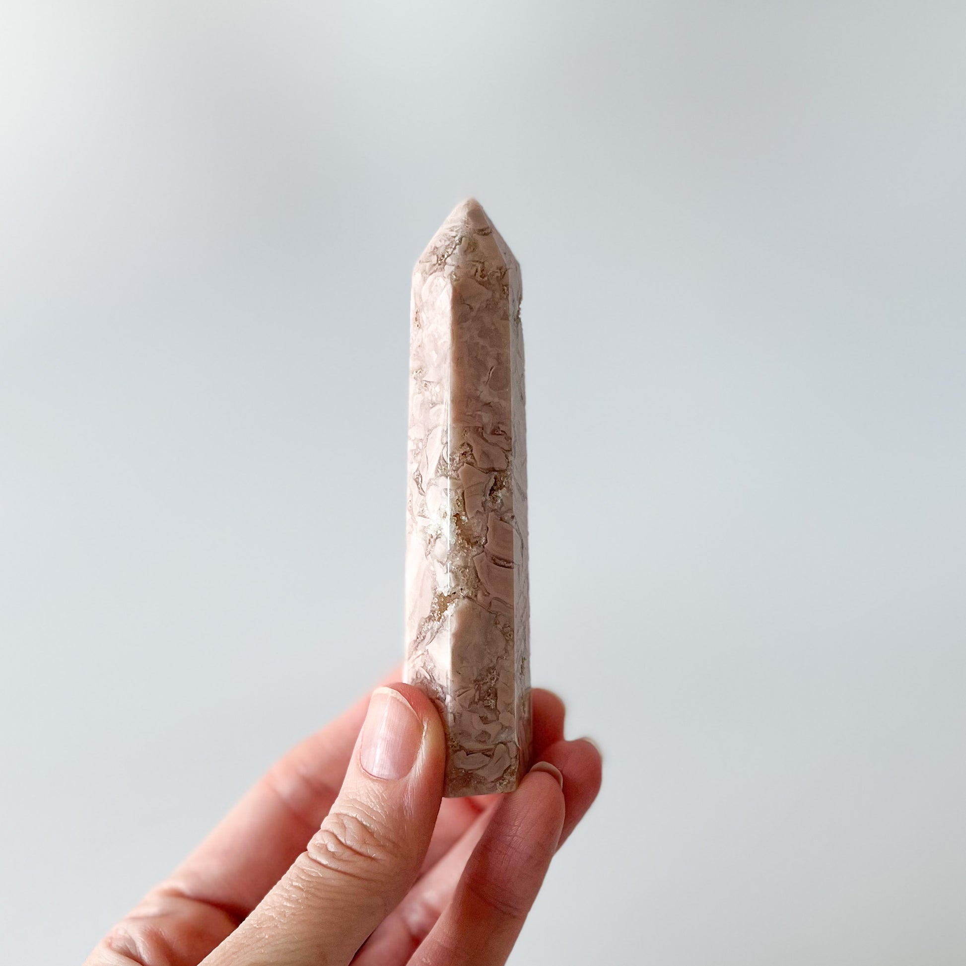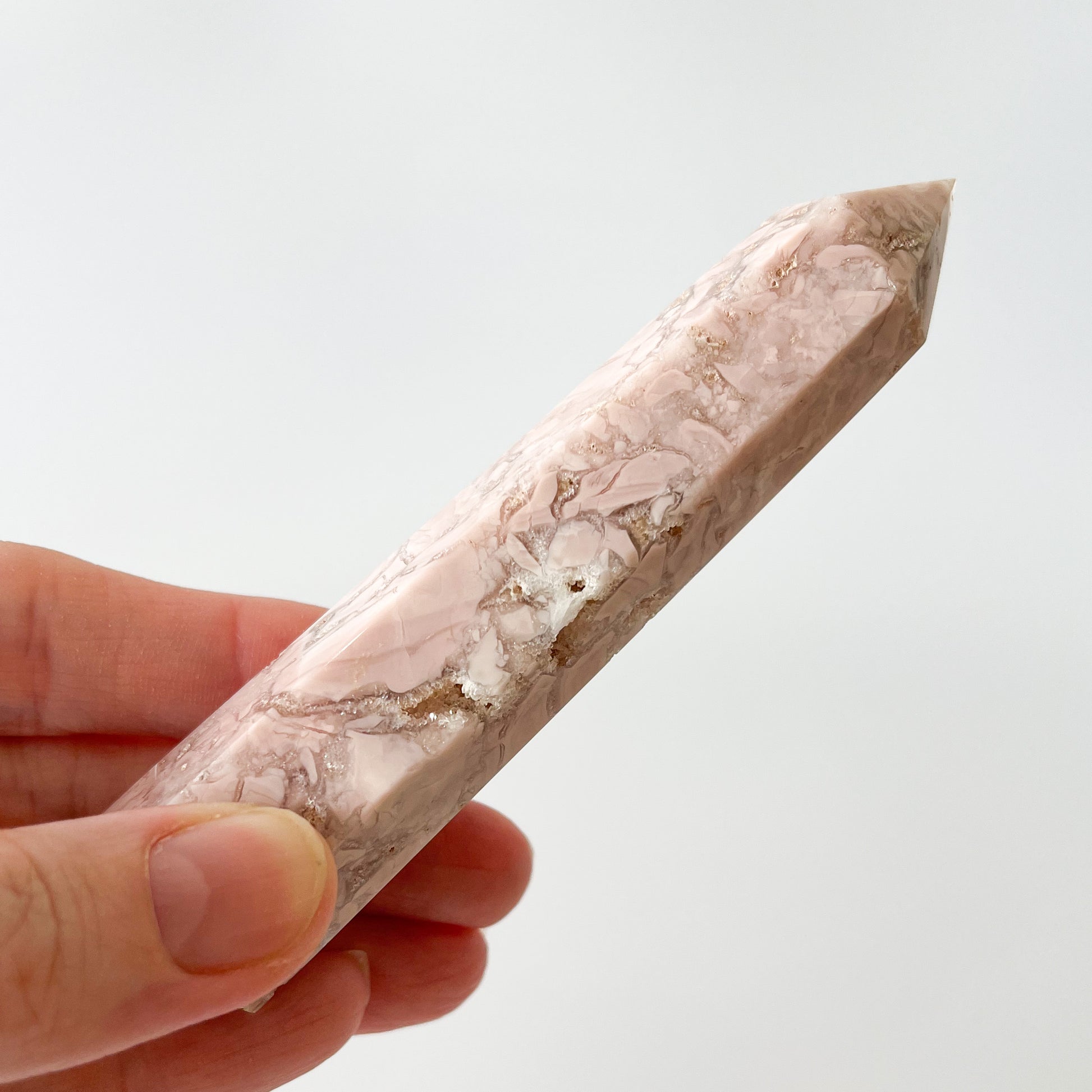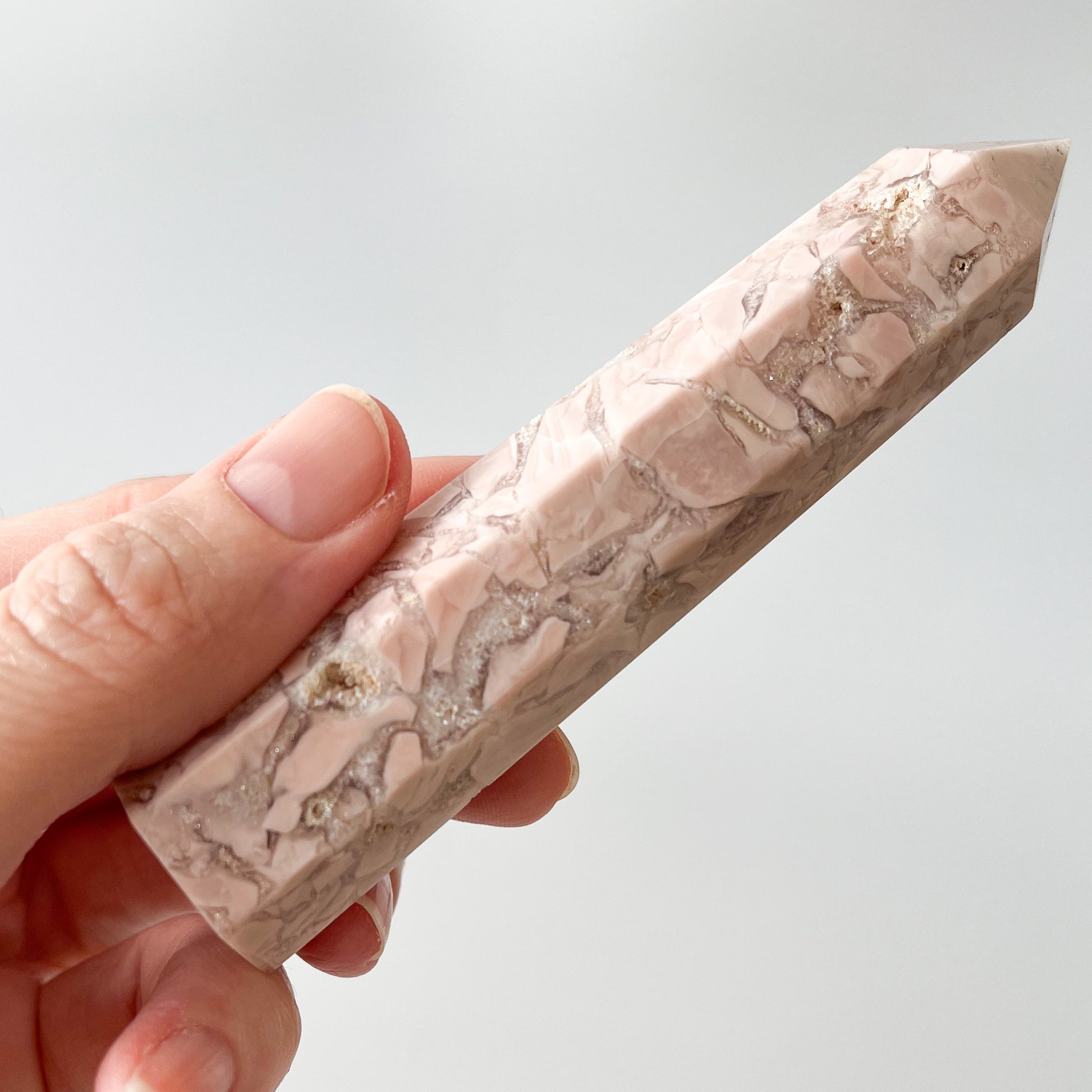 Pink Agate Point with Quartz druzys & inclusions / 76g